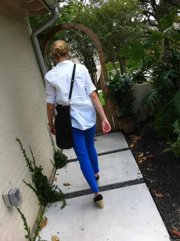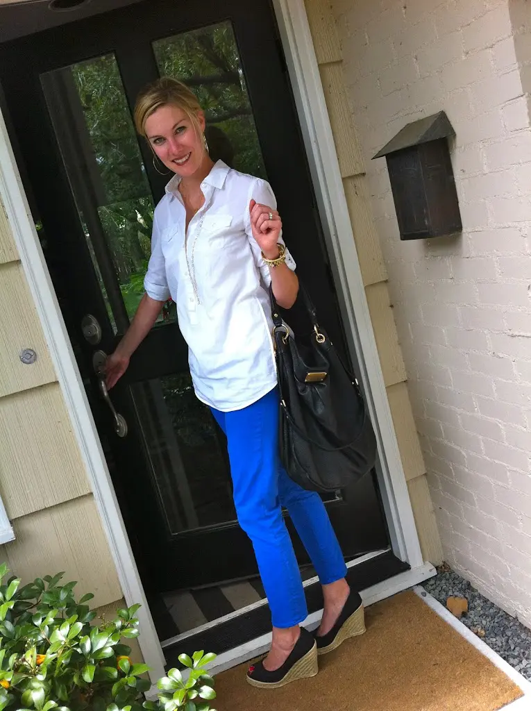 The colored jean dilemma: Yesterday while shopping for a Client at DSW I ran into a friend. She was shopping for shoes to go with her new blue colored jeans. She asked me “What shoes do you think would go with my new jeans?”. Luckily I had this outfit on and was able to show her how black shoes go great! She went next door to get similar black Toms. Thanks Holli for the post idea!