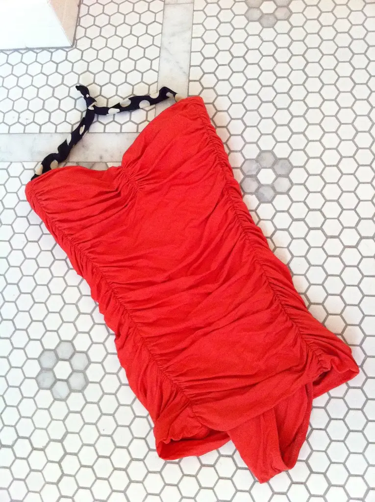 I absolutely love one piece swimsuits. I always have. In fact, I still have the one piece I wore in college. Lucky for me it’s the season’s trend. I bought this suit on Wednesday at Nordstrom. On Thursday I opened the Wall Street Journal to an article titled “The Summer of Modesty, Pin-Up-Girl Returns and Is Kind to Women’s Curves; Bye-Bye, Bikini.”