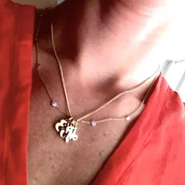This is the first picture of my friend’s necklaces. I love these photos because you rarely see them without these necklaces on and I love that, it’s who they are! Libby wears this diamond necklace (made by her jeweler) paired with the short James Avery charm necklace. Her children were each given a charm of their initial for their baptism and she wears them, I love it! Diamond Necklace – Neiman Marcus for similar, Charm Necklace – James Avery