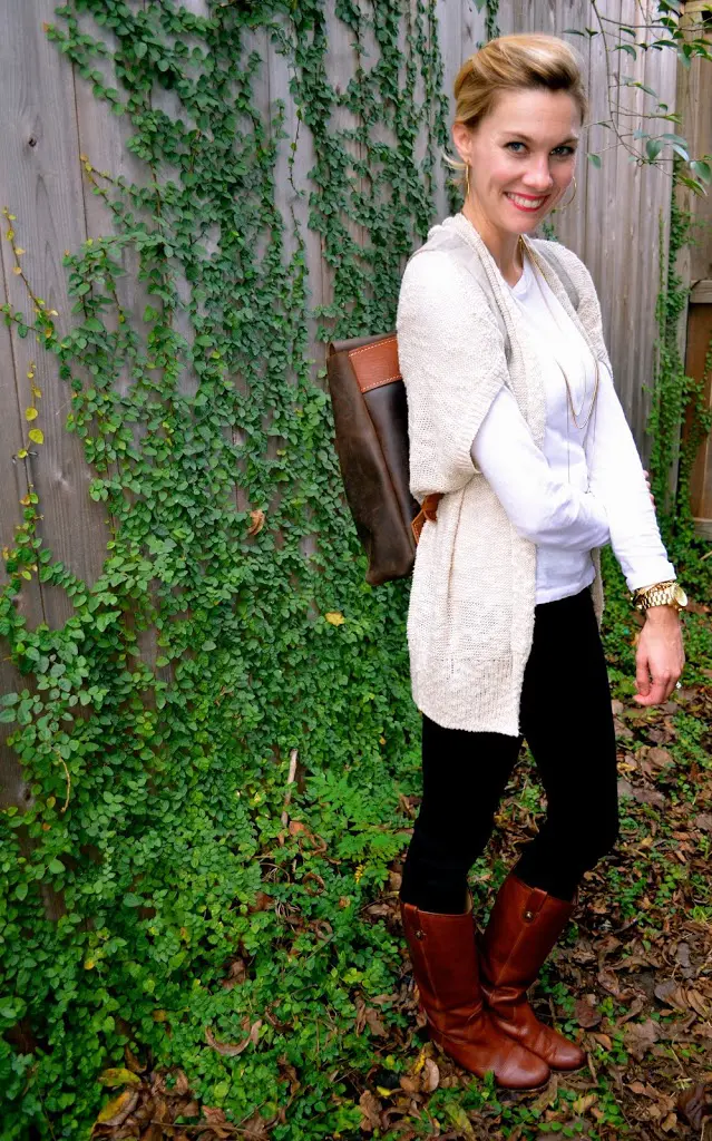 It’s official, I wear the same thing over and over again- ha! I thought this was a point worth posting about. You might not believe me, but my husband takes up more space in our closet with his clothes than I do. He is very stylish in his own right. Somewhere along the way, I adopted a philosophy of just owning a few really good staples and then adding a fun, trendy piece to top it off. That’s why you see me in the same boots, pants, necklace, earrings, and bag post after post.