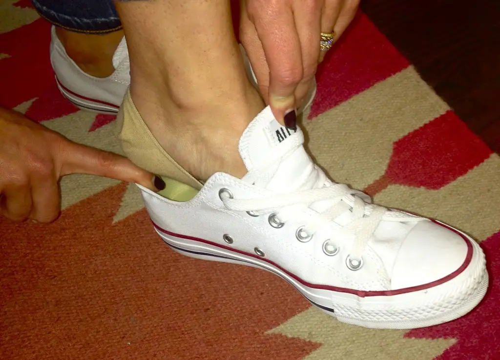 Did I catch your attention with my ugly foot? Ha! When I purchased my Converse I saw these Hue “no-show” liners at the check-out counter. They were just what I needed for my new tennis shoes! I passed on buying three pair for $16 and decided to try a single pair out first. Well, they are awesome and so I had to share! They have a sticky tab on the back that keeps them in place and also provides a little cushion for the heel bone.