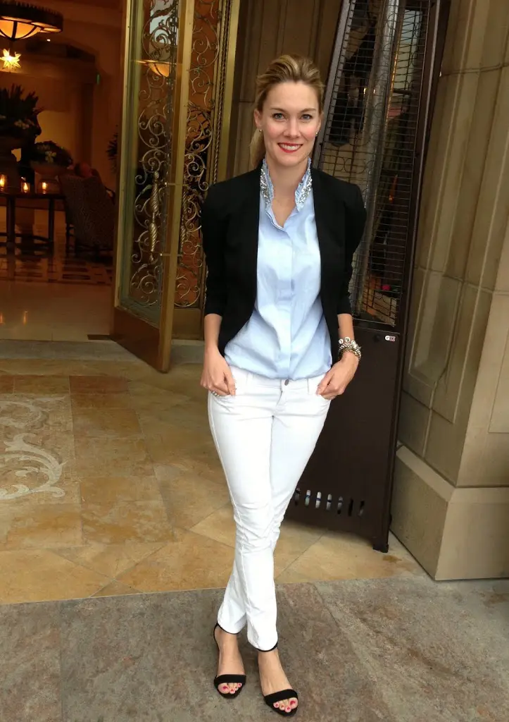 Top- J.Crew, White Jeans- Old Navy, Rhinestone Sandals- Michael Kors for similar, Blazer- Helmut Lang for similar