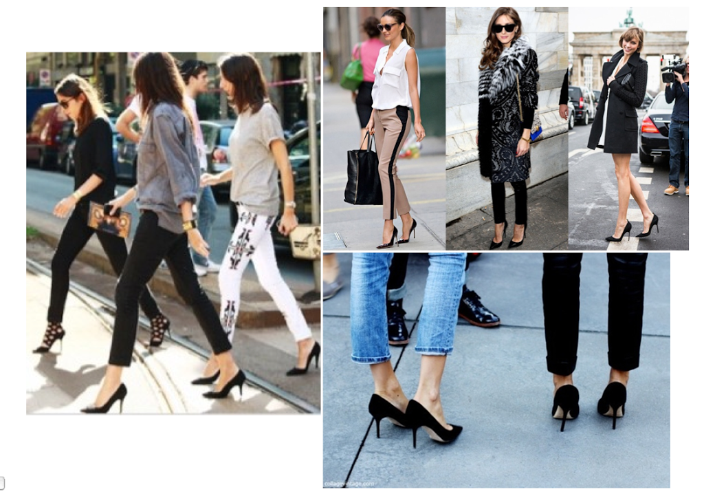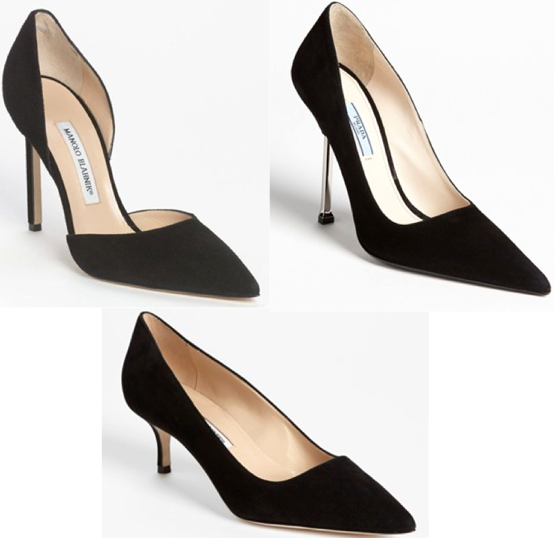 My trendar (aka, trend radar) is going off like crazy! While casually flipping through a style magazine, the trendar started going off so loudly in my head that it inspired a post! It was like red and white lights with the siren noises and all. These pointy black pumps are everywhere! Here’s the good news: the trend is a classic. Ok wait, maybe that makes this a wardrobe staple and essentially not a trend. Oh, but who cares -ha! And, they are being worn with everything, even jeans and a t-shirt! They are versatile, and they will stand the test of time. That’s a double plus for a trend!