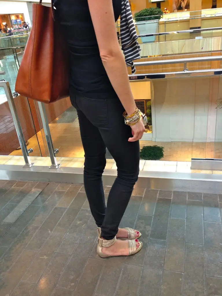 Truth be told, I’ve been wanting to tell you all about these jeans for over two weeks! Here’s the thing, black jeans when it’s 100 degrees… I wasn’t crazy about that idea. So, finally, I came up with this solution. I paired it with a tank and sandals. I’d say it’s a pretty good summer to fall “transition” look, no? Not to mention, easy.