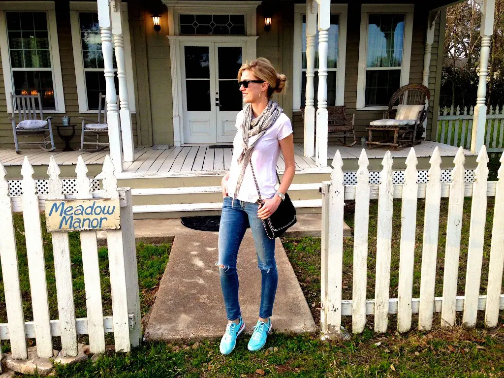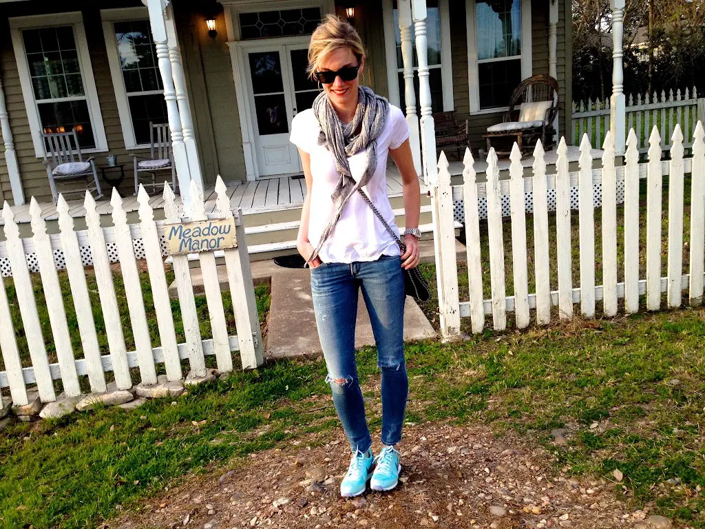 The glacier blue sneakers from Friday’s post add a fun pop of color. I’ve been wearing them a ton. Just wait, they are all over my upcoming everyday outfit post -ha!