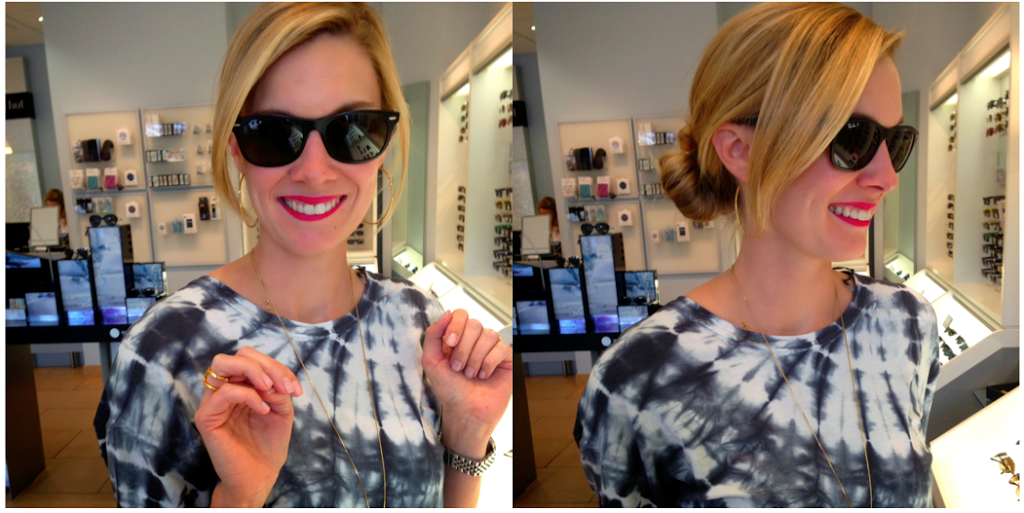 Tip: If you’re trying to decide on sunglasses and you can’t make up your mind, have someone snap a few pictures of you in them. There is something about seeing a picture of yourself in the glasses that makes it easier to decide.