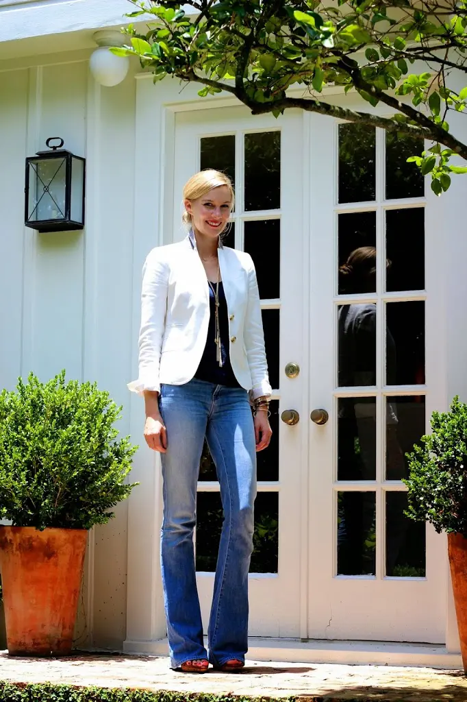 I love that this outfit is made from basics… blue jeans, a navy tee and a white jacket! Hopefully you have some of these basics in your closet already and this can serve as an outfit inspiration! And if you’re looking for a good pair of flare jeans, these are on SALE right now at Nordstrom! I’ve worn this out to dinner twice, and I wore this to church last Sunday (yes, my church is casual).