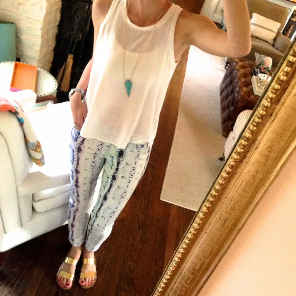 I just received my bootie/sandal/wedge from the Nordstrom anniversary sale in the mail, and I freaking love them. I was taking a picture of them to send to a friend, but I forgot to take an everyday outfit picture, so here it is. I actually had my flat tan sandals on that day, but this looks pretty good -no? Maybe on a fun casual date?