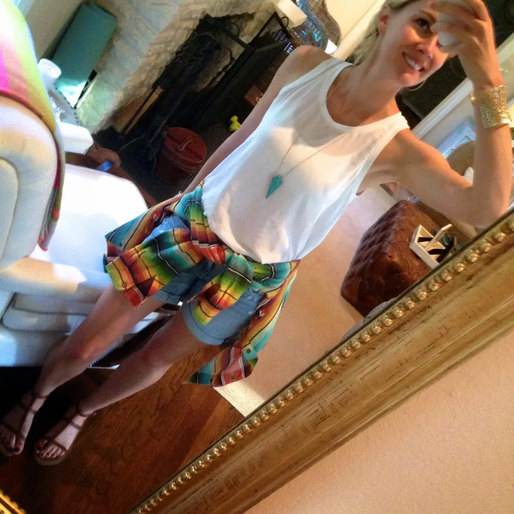 Tank- Splendid, Shorts- Old Navy for similar, Button down- Ralph Lauren Vintage, Shoes- K.Jacques and here for similar, Necklace- Kendra Scott for similar, Bracelet- c/o Kendra Scott, Earrings- Argento Vivo Lately, I’ve been love tying things around my waist. Apparently it’s the thing to do right now, at least that’s what my friend told me. No wonder I’m loving it -ha! Anyway, this outfit needed some color.