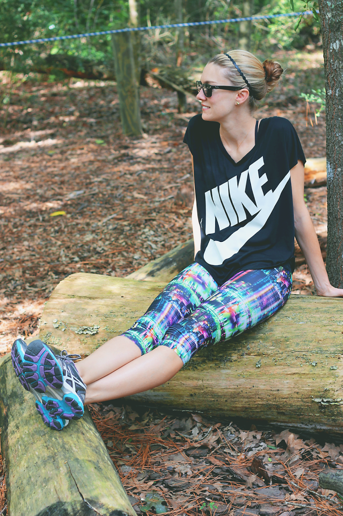 Top- Nike, Hot Pants- Onzie, Tank- Target, Bra- Lululemon, Shoes- ASICS for similar, Sunglasses- Ray Ban, Necklace- Shopbop, Earrings- Nordstrom for similar, Hair Band- Scunci