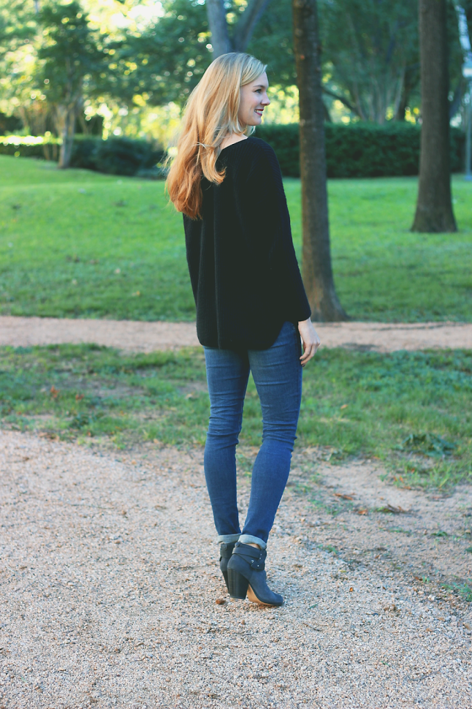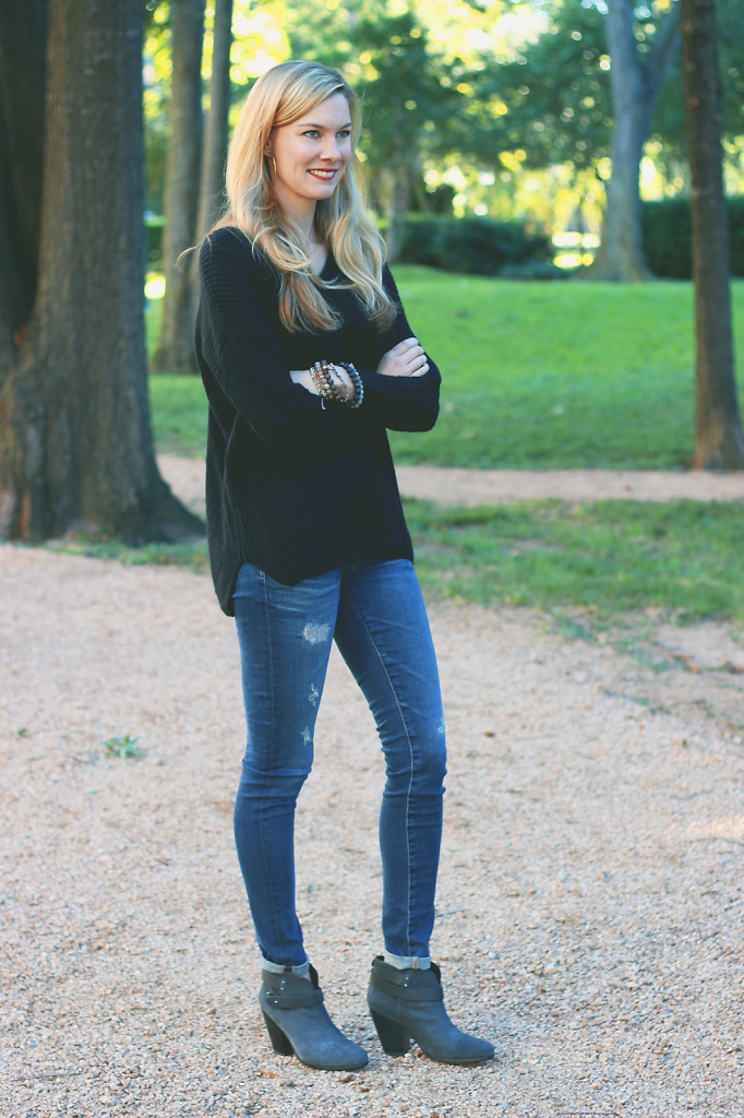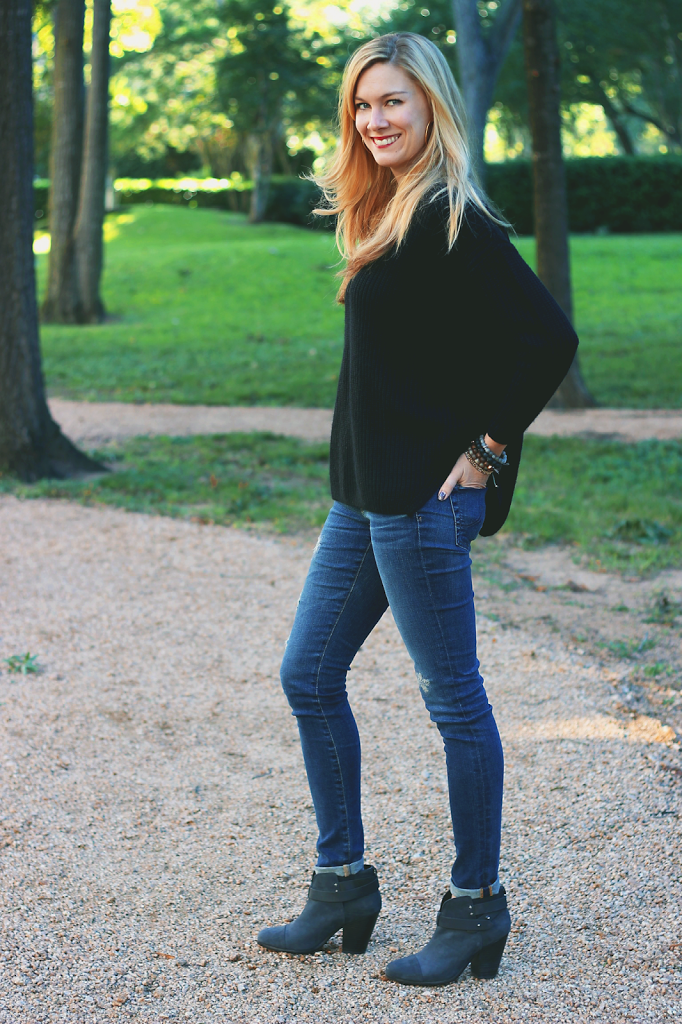 Sweater- Topshop, Jeans- AG, Booties- Rag and Bone, Earrings- Argento Vivo