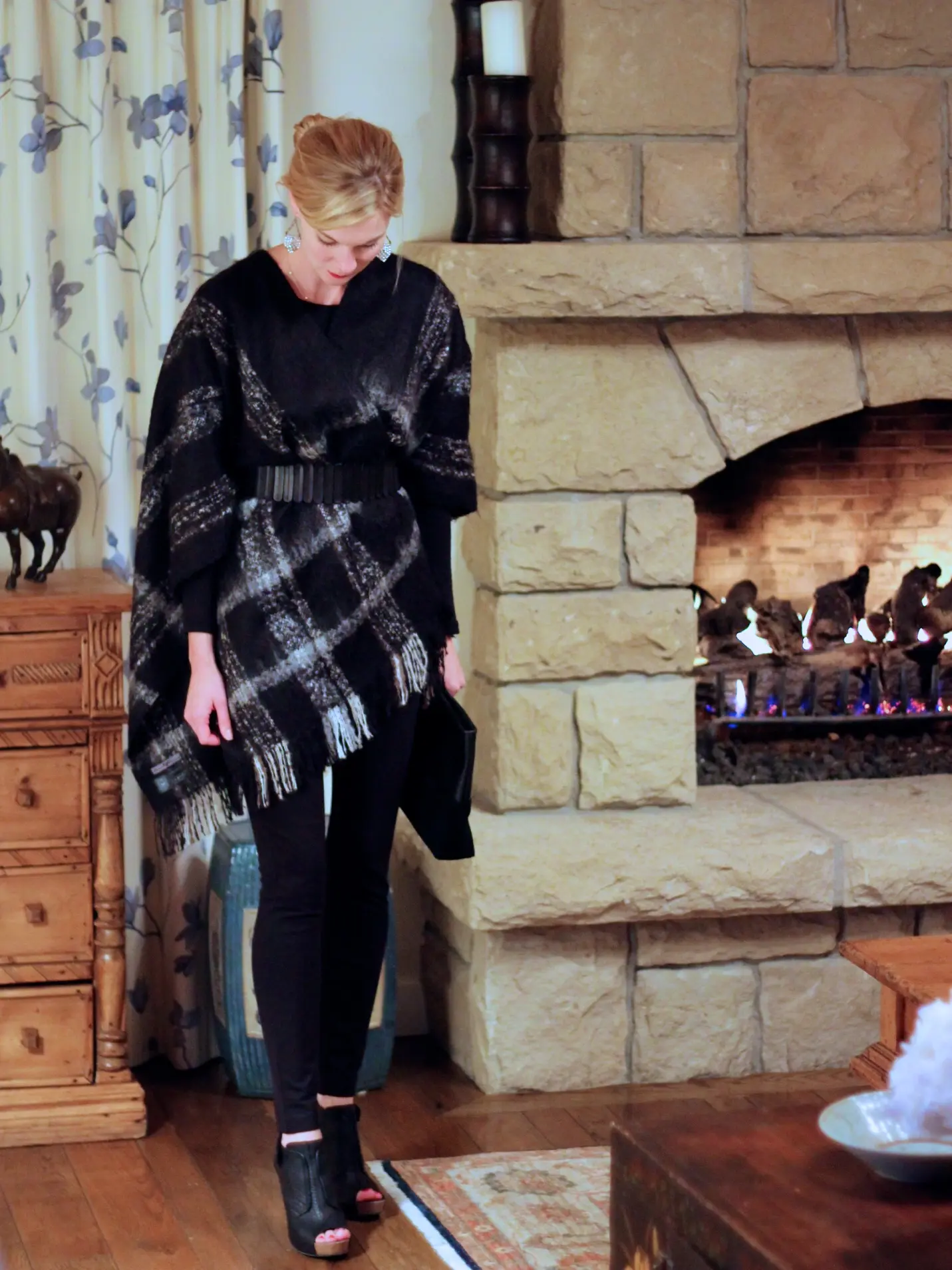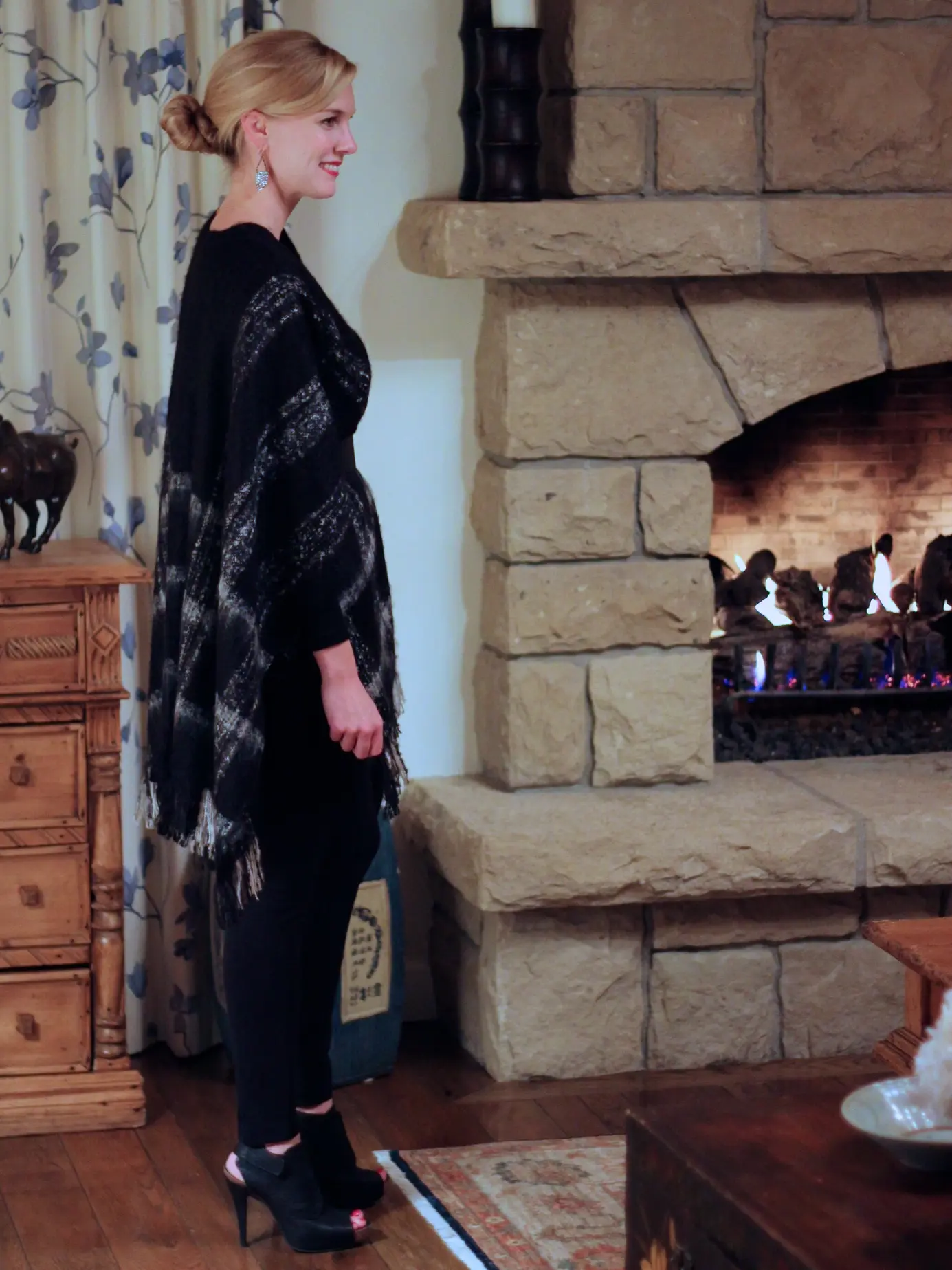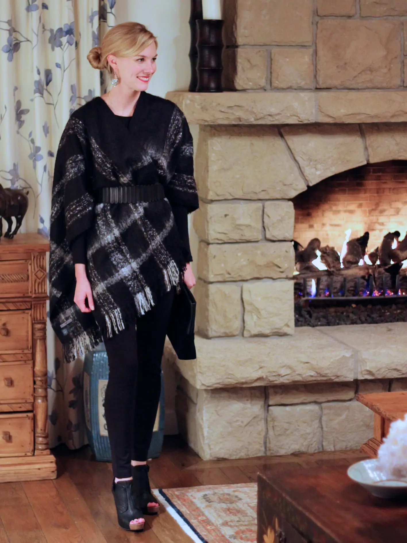 Here is the cape in action at The Stonehouse, where we had dinner for our ten year. The cape kept me perfectly warm and since it was belted, I didn’t have to keep adjusting it.