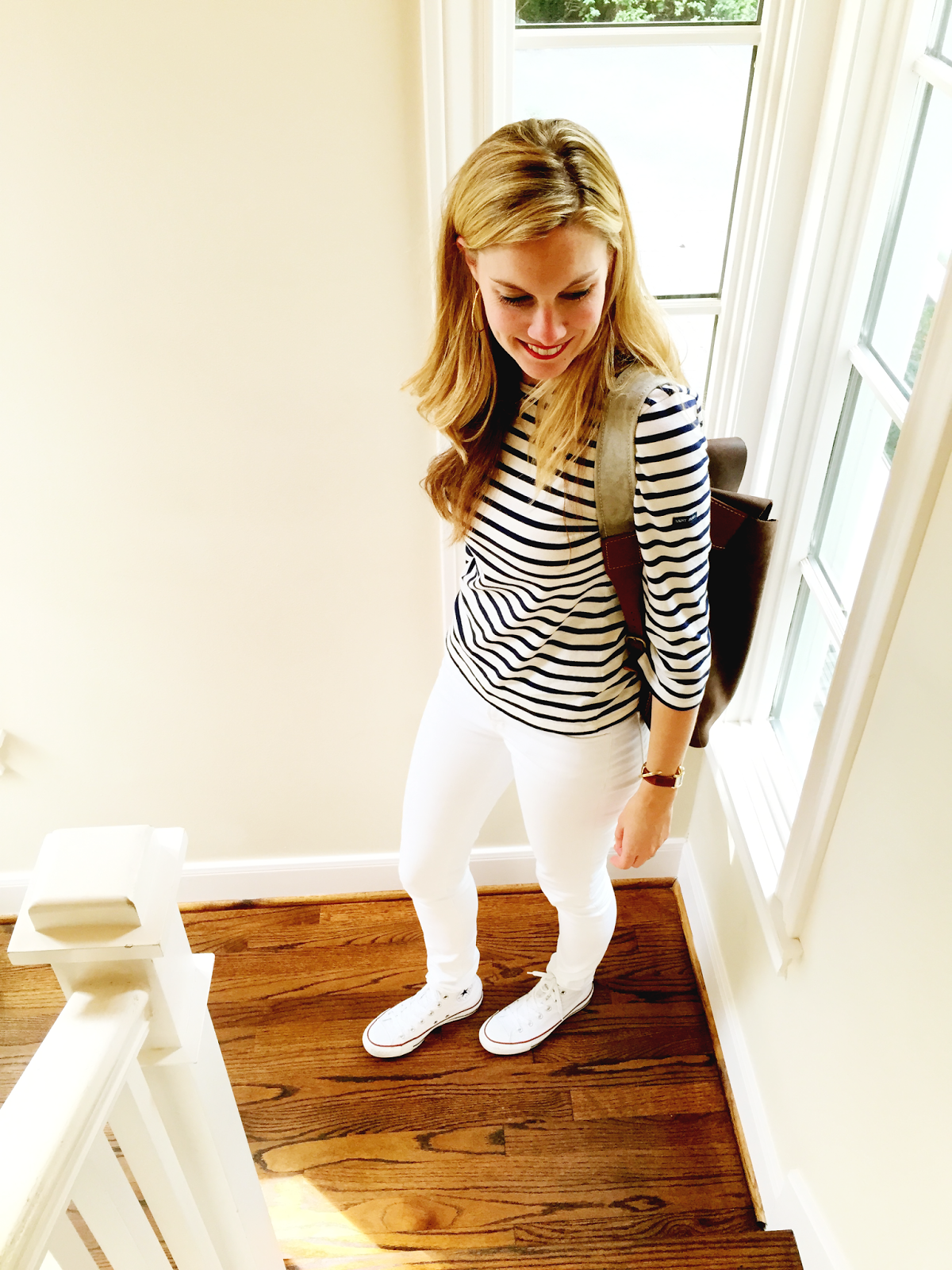 Top- Saint James, Pants- J Brand, Shoes- Converse, Bag- Stash and Co, Watch- Cartier, Cuff- Giles and Brother, Earrings- Argento Vivo