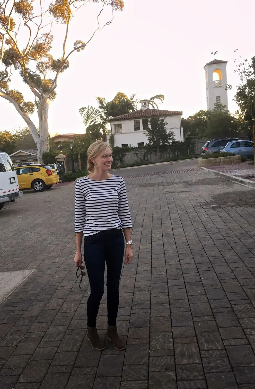 Top- Saint James, Jeans- AG, Booties- Hudson, Watch- Michael Kors, Earrings- Argento Vivo