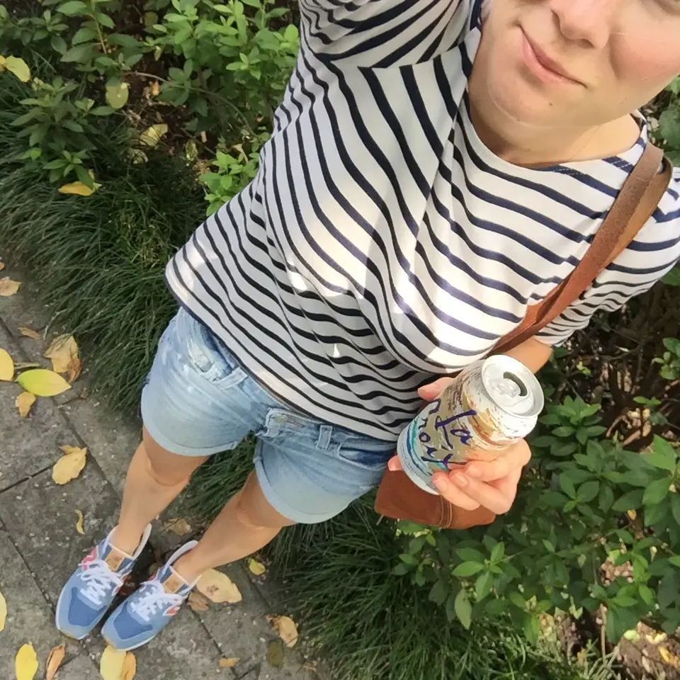 Top- Saint James, Shorts- Anthropologie, Shoes- Here for similar, Bag- Madewell
