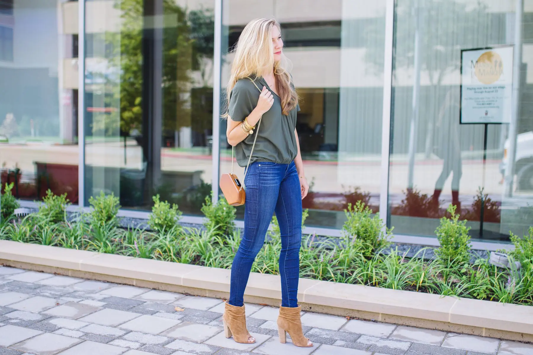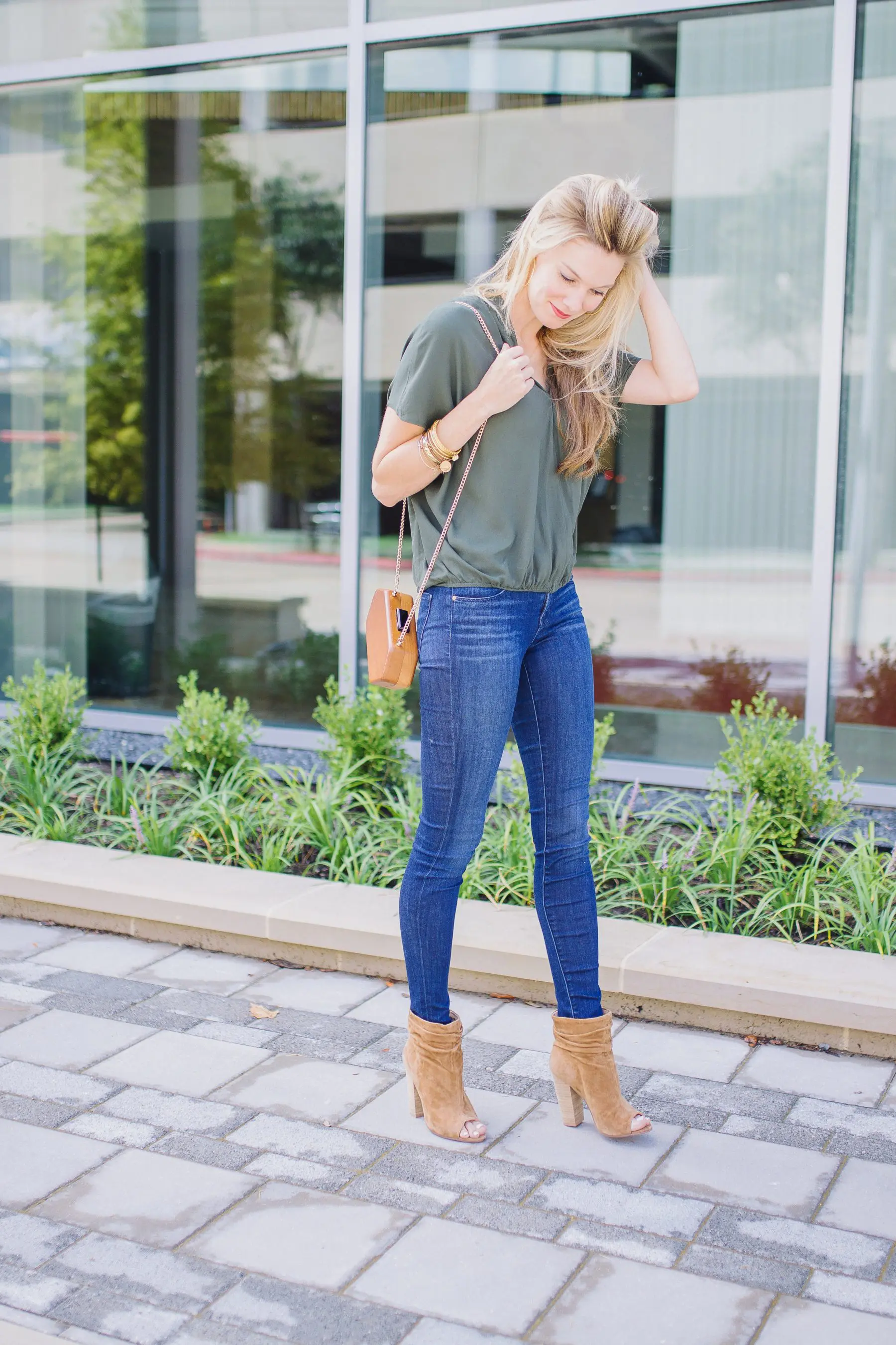 Top- Ella Moss, Jeans- J Brand, Booties- Nordstrom, Bag- Shopbop for similar, Bracelets-Alex and Ani and Julie Vos, Earrings- Argento Vivo, Necklace- Argento Vivo