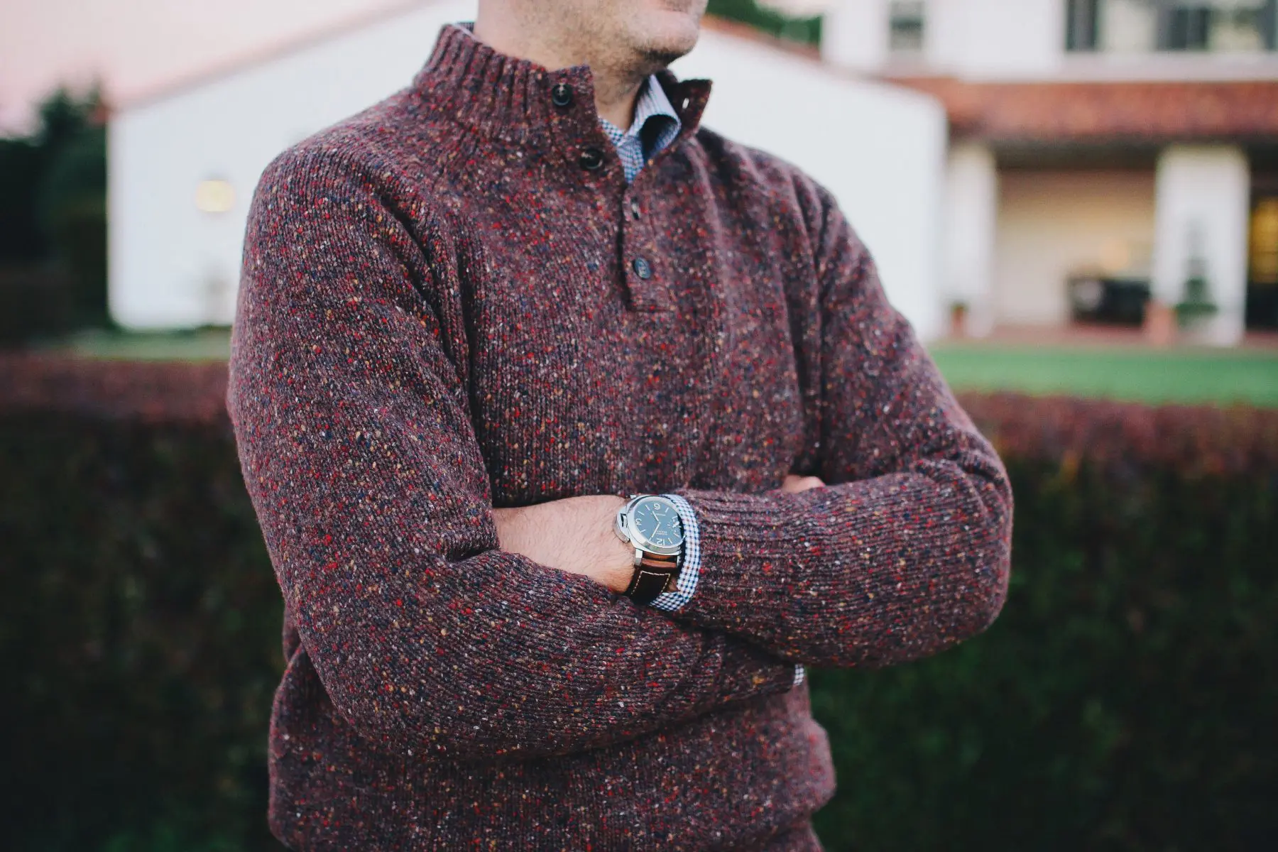 I personally really like the collar and buttons on this sweater. It makes it feel modern without loosing any manly-ness. He also purchased this sweater, but we didn’t get a chance to take a picture of him in it.