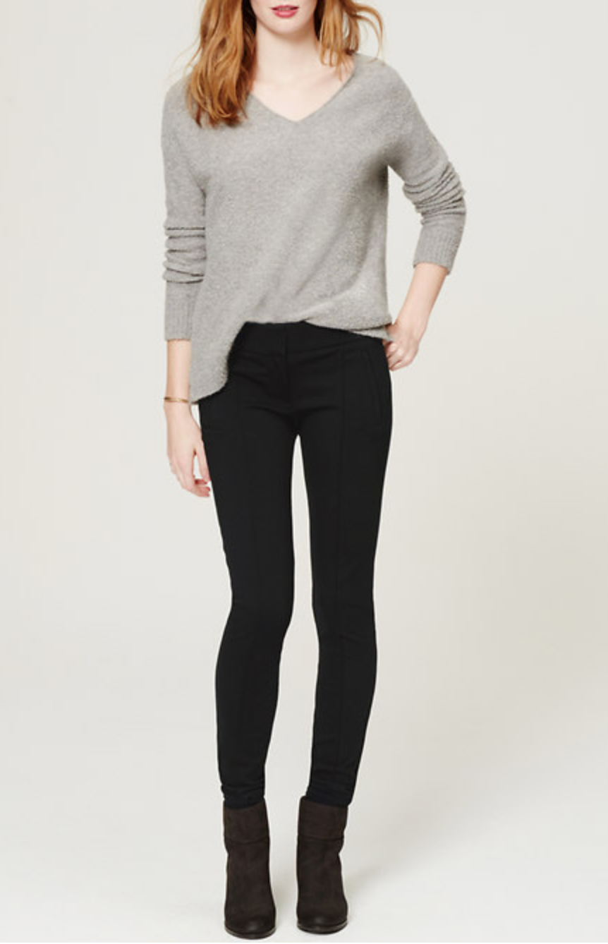 She needed pants that she could wear to church but could also wear everyday, because if you are only buying a few items, it’s important to make the items are as versatile as possible. She could wear these pants in both situations, specifically because these have a zipper and pockets, which makes them easy to dress up or down! Plus, the thick legging like material is super flattering and comfy. WIN! WIN!