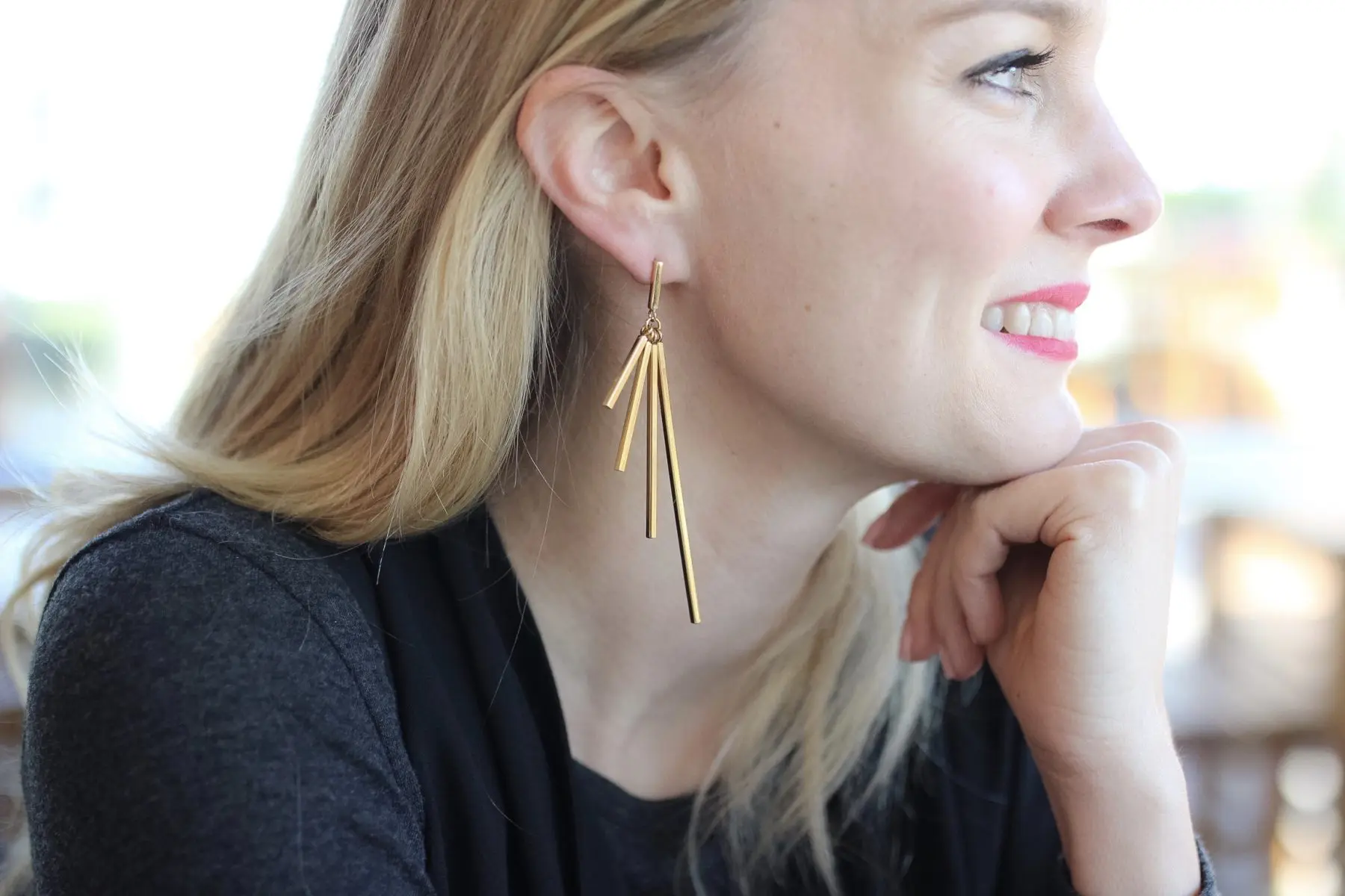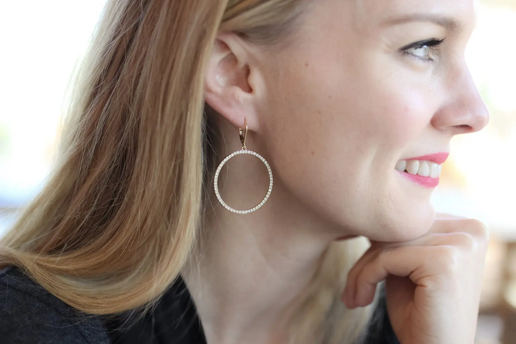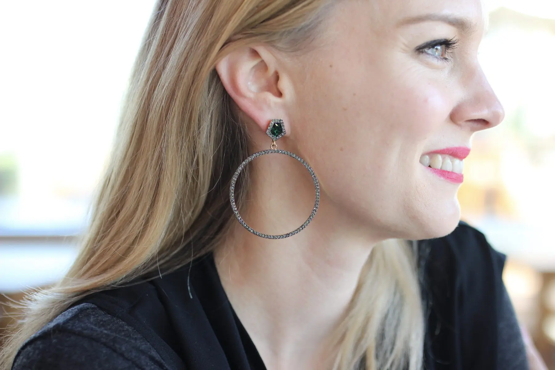 I’m wearing this pair as I write this post. This picture does not do these earrings justice. When you move, the light catches on the flat lines and they sparkle. I love them, and they’re not a hoop or a circle -ha!