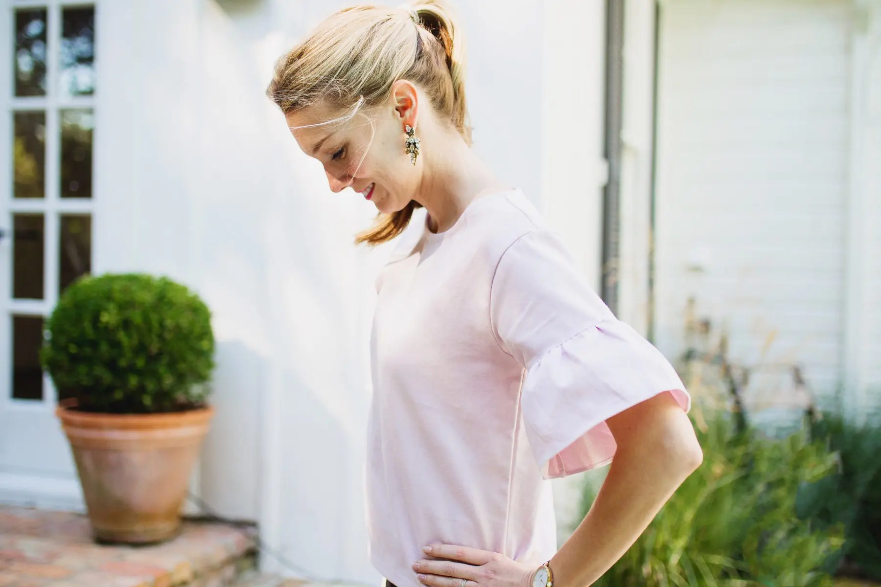 Outfit links: Top- J. Crew by Nordstrom; Pant- J. Crew; Shoes- Nike; Watch- Kate Spade; Earrings- Similar here
