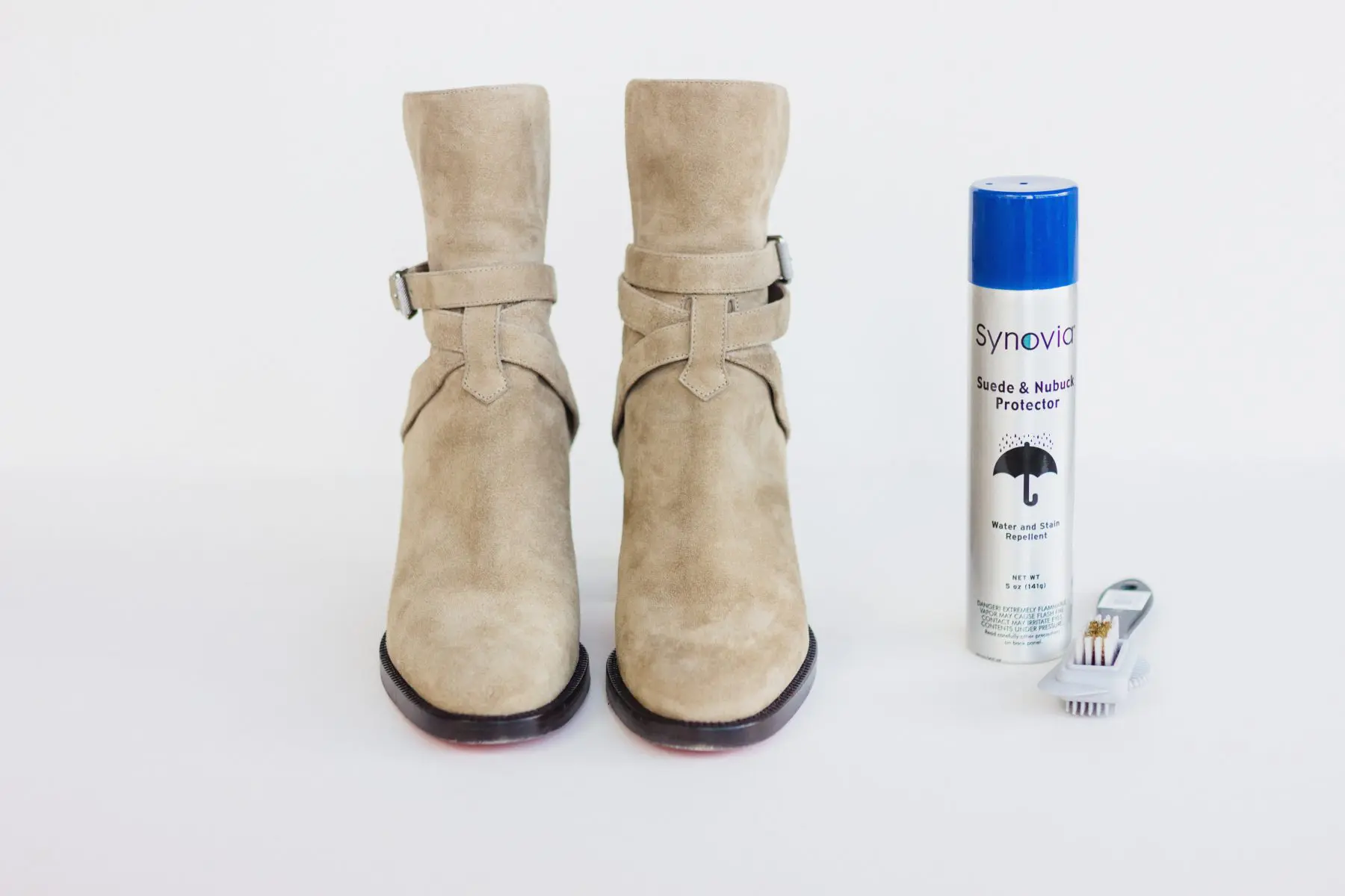 I recently had a situation where I ruined a new pair of suede shoes by spraying them with a suede protectant spray. The spray made my shoes almost two shades darker! AHHHHHHH!  I was devastated, but then I became determined to find a suede spray that would not change the color or texture of the suede! My friend Traci was a willing to participant with her new boots. Daring, I know, but she said she was going to spray them no matter what. So off we went, determined to find the best suede spray on the market. We ended up talking to a very knowledge shoe associate, Chris, at Nordstrom. He knew more about suede than I know about jeans -ha! He recommended Synovia Suede & Nubuck Protector spray and the results speak for themselves…