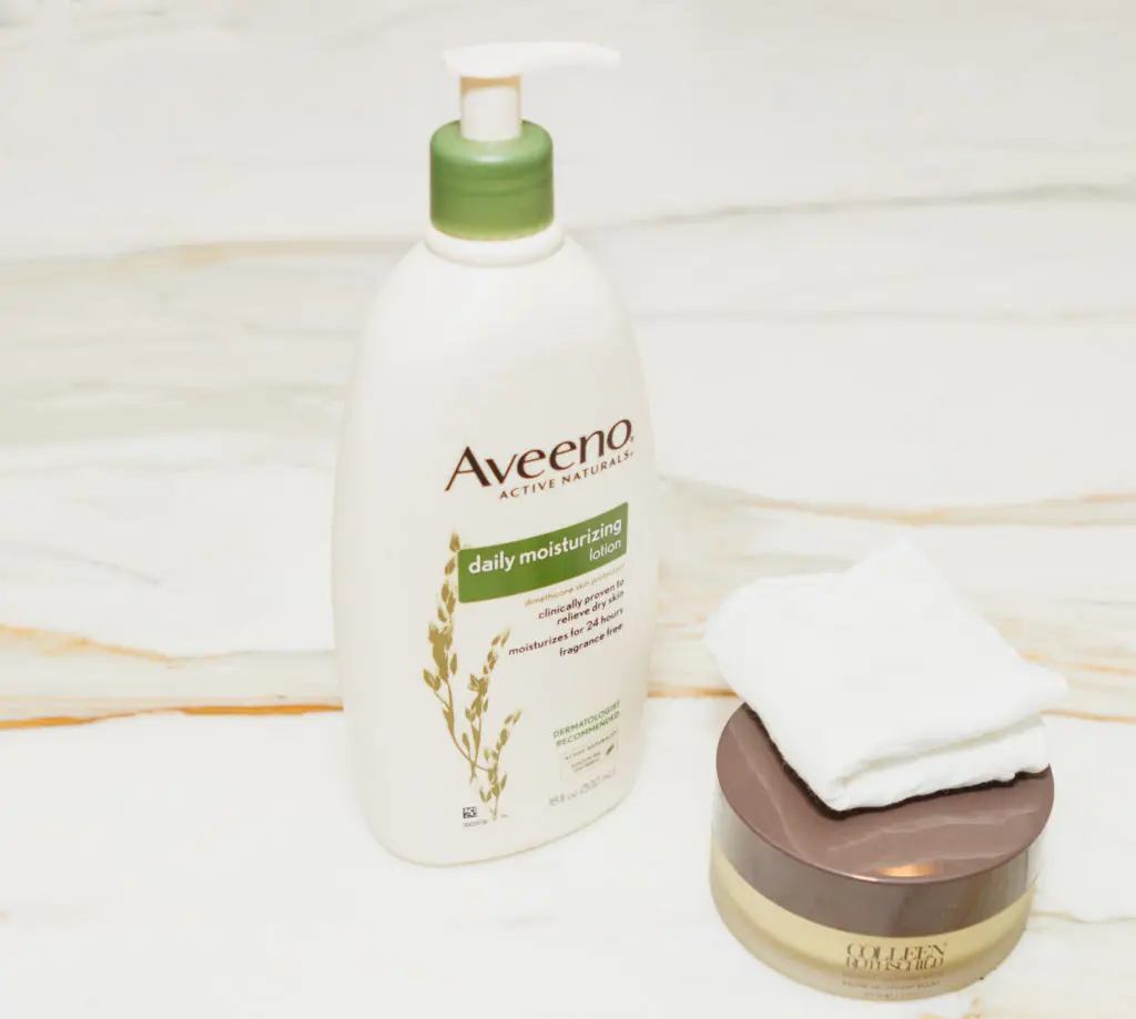 Product Links: Moisturing Lotion – Aveeno, Face Cleanser – Colleen Rothschild (ON SALE!)