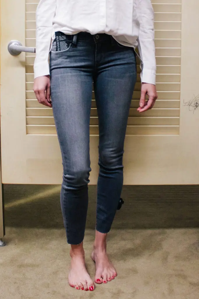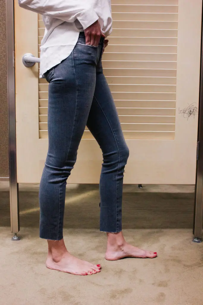 Speaking of raw edge, do these grey jeans look familiar? I posted them as the best fitting grey jeans on the market (here). Well, here they are again! This time with a raw hem. Moral of the story, if you’ve been wanting a pair of grey jeans, look no further. If you have this pair of grey jeans and you want to update them, cut the bottom hem off! My sister already did! I can’t wait until she sees that she was actually a trendsetter!