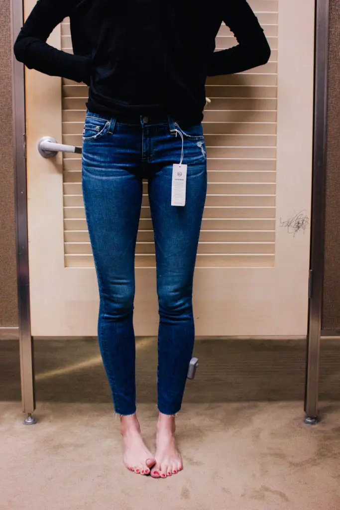 I love the black Paige jeans. I bought them yesterday and they are fabulous! I also tried on the AG jeans with the raw hem, but I didn’t get them because I don’t really “need” more jeans. However, now I’m second guessing my decision….maybe I should go back and get them, lol! Also, I love the Kate Spade shoes on you. 🙂