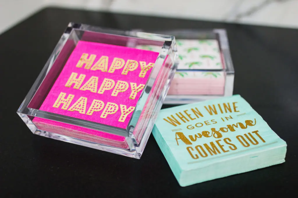 What about these fun cocktail napkins with the acrylic holders?!?!