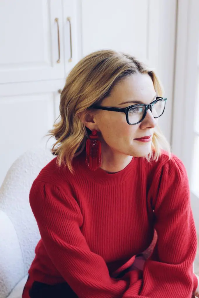 Love the red sweater! What size are you wearing? And what about those cute glasses? Do you have a link for them?
