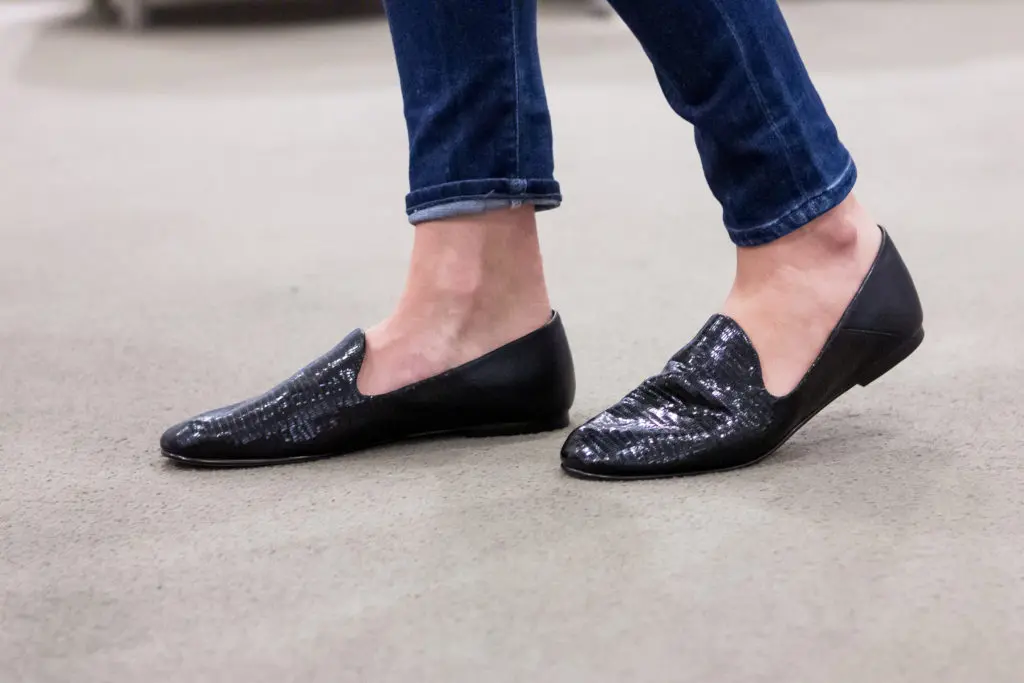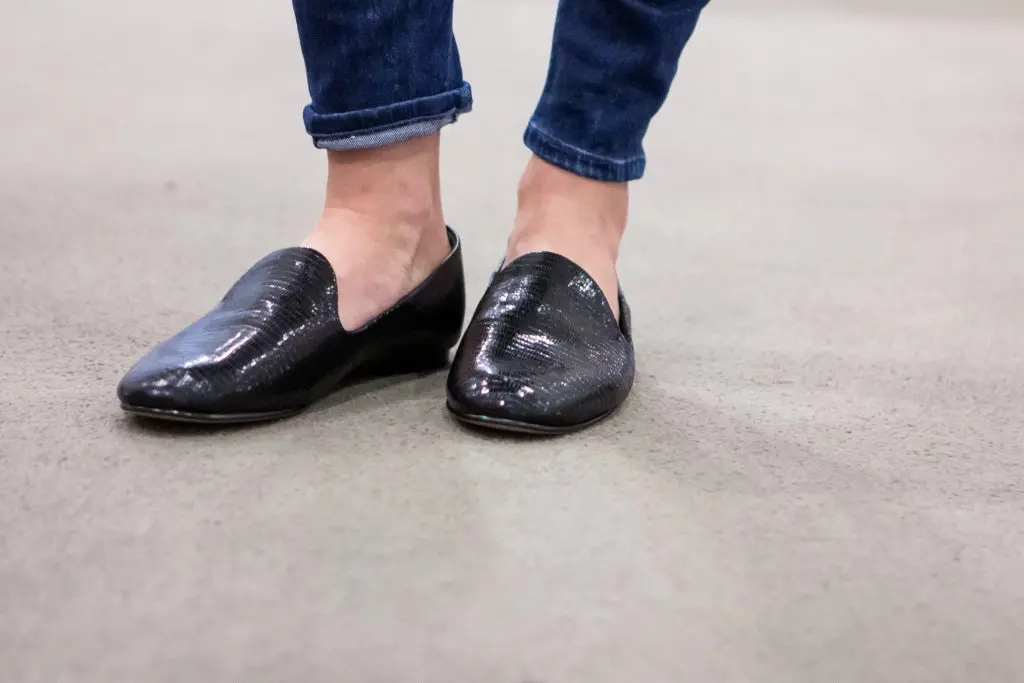 This VINCE loafer is one of the most comfortable shoes I’ve ever put on my foot! My sister said they feel like slippers, so I’d say she agrees! The VINCE Venitian loafer is not new to the sale, but the black pebbled snake skin look is NEW, and I love it!!! For sizing reference: These run TTS.