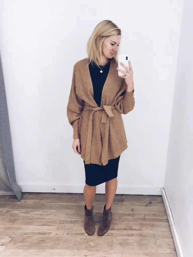 Howdy Carly! This native Dallasite, reluctant Hoosier has loved your style for years. My body shape is completely different from yours (I’m XL-XXL, 16-18) but I take inspiration from your ideas. THIS post though… you are rocking the “uniform” I have worn most days since I gave birth to my son in 2012! I almost always sport a black knit dress in various degrees of “body-con” and length (knee, midi, maxi) with a jacket or sweater of some variety (military, blazer, denim, Barefoot Dreams, etc). I never tire of it! I can wear with gladiator sandals, sneakers, or Birks in the summer, or don tights with boots for the Midwest winters. I like Eileen Fisher for my knit dresses — pricey to be sure but the quality is so worth it and last for years — and usually pick up an Old Navy knit dress every season to change things up at a reasonable price point. I’ve hesitated for some reason to try the dress with pullover sweater look. But seeing it on you is making me run to my closet and give it a try! Thanks! 🙂 xoxo