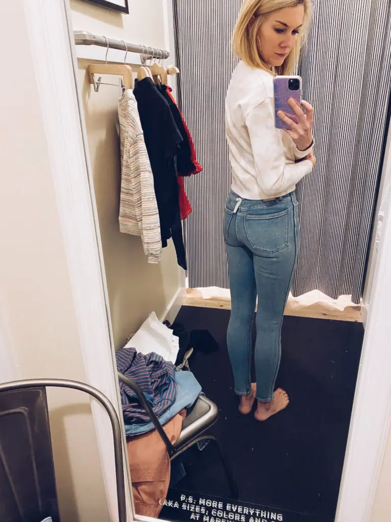 Speaking of amazing jeans!!! Guess what else I found at Madewell?!?! White jeans that are flattering!! CAN IT BE?!?! I mentioned this pair of white jeans in a recent post called “Starting Over.” I helped a client start her wardrobe over, and we found this amazing pair of white jeans by Madewell. I didn’t really concentrate on them in the post because they were out of stock at the time. Then, I went to another client’s house, who had ordered the jeans based on my post, and they fit her just as well as my other client! So, I went to the store to buy them immediately, and they were out of stock in the store, too! I’m not surprised because when there’s a great pair of white jeans, they usually sell out. So, here’s a stock photo, but they are fully in stock online. And just a friendly reminder, the tighter the better when it comes to jeans. Yes, even white jeans.