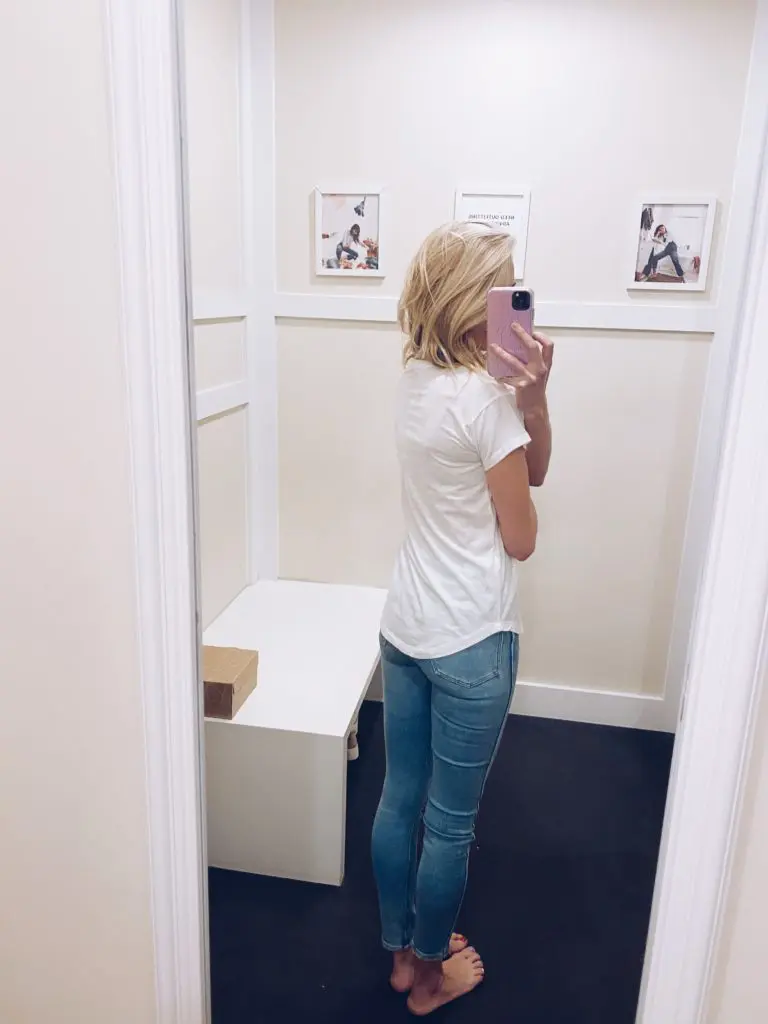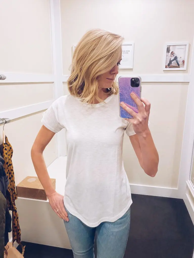 I have a few clients that would prefer a crewneck tee to a v-neck tee. If that is you, you’re in luck!!! Madewell has a new crewneck tee that hits all the marks. It’s not see through, it doesn’t hug the middle, and it covers the front and back with the sides curved, so there’s not a horizontal line right at the hips. I’d say that is a winning tee!