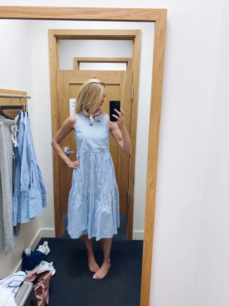 The perfect go anywhere dress (including going to your bedroom from your kitchen). I am wearing a size 4, but I needed the 2.