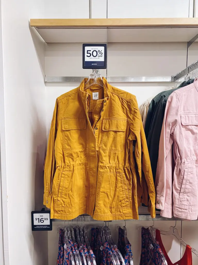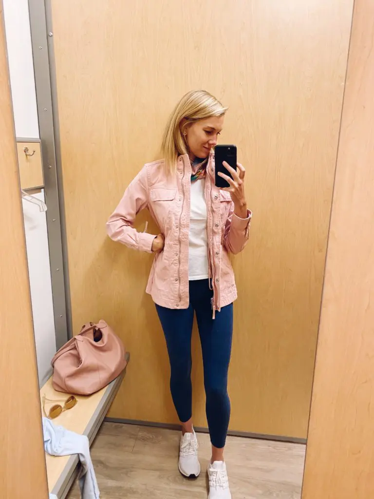 A pink army jacket… d-Arling! Especially since I think pink is a neutral after wearing my pink purse (pictured) with everything! I’m wearing an XS.