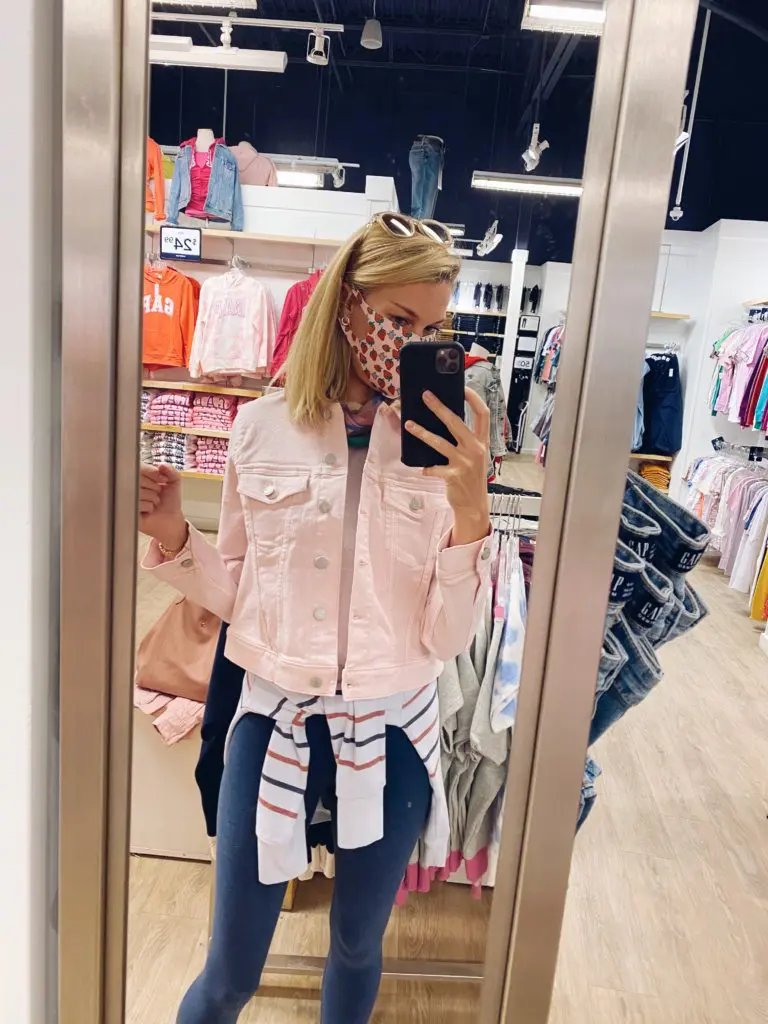 Wait, a pink denim jacket?!? I’ve died and gone to heaven! I’m wearing an XS.