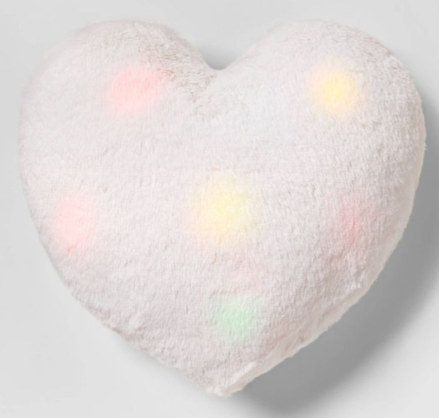 Light-up heart pillow (@susannerowell)- I gave my niece a mermaid sequin pillow last year, and it was a big hit! So I know a light up pillow would be a really big hit, too! I bet it looks really cool when it glows at night! Might match those LED lights!