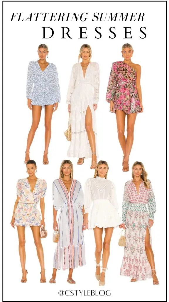 There’s a certain dress style I found that is flattering on so many clients, and I’m seeing them everywhere right now – yay! You know the dresses that have an elastic waistband with a blouse-y top and an a-line skirt on bottom? It’s hard to explain, but hopefully you can tell by the graphic. They work so well on so many different clients because they effortlessly give a flattering waistline (and we all know sometimes it’s hard to achieve a waistline without a lot of effort- belts, sloppy tucks, etc). Plus, because this elastic waistband often has gathered fabric above and below, it disguises lot, so it’s forgiving. The only thing to keep in mind is how big the elastic waistband is. Sometimes if the band is thick, it can hug the mid section. I recently worked with a client to help her find a variety of these dresses, and I found a whole bunch for her to choose from on this page.