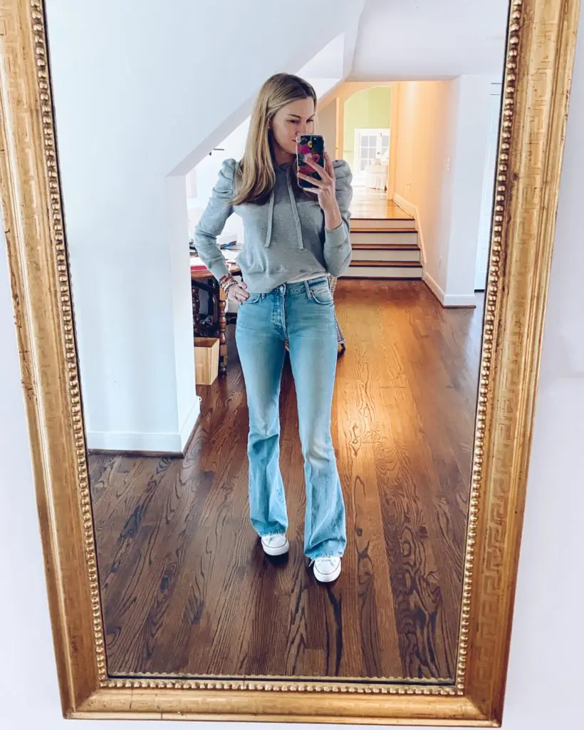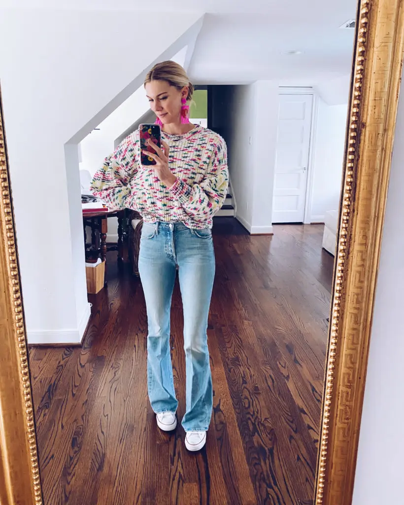 Sweater- Cinq a Sept, Jeans- Mother , Earrings- Casa Clara, Sneakers- Converse