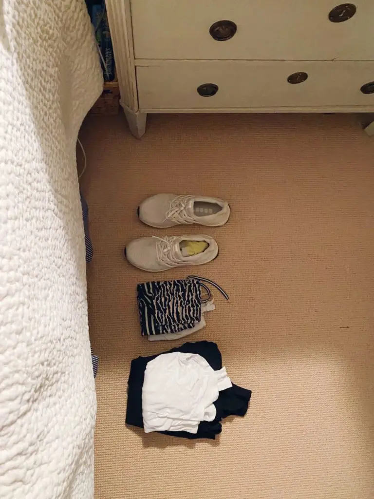 When I’m working from home, I put my clothes next to my bed, so it’s not 11am and I’m still in my pajamas jamming away at emails. Plus, I get dressed under the warmth of my covers!