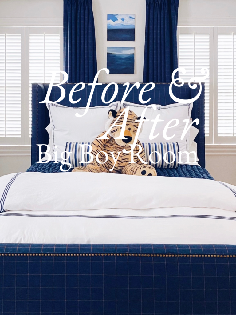 Big boy rooms are bittersweet, aren’t they? Now I know why kid’s rooms stay untouched for years after they leave. This may happen in my house… Just sayin’. Right now, I’m sad to see my son’s sweet room transformed, but I’m pretty happy with how it turned out! From a whole bunch of fabric swatches and inspiration photos spread out on my dining room table with Tonya from @tonya_sparkman_sewn, to an amazing bed with matching curtains for his big boy room. It’s homey and cozy! I love it, and he does, too!