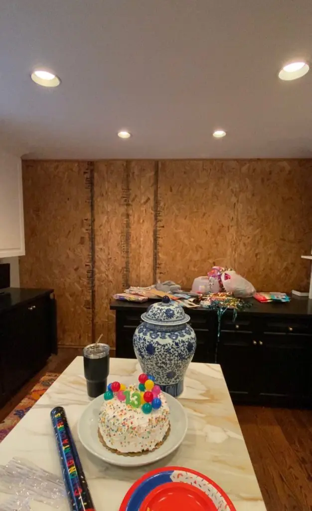 I think this wall may say something about my personality. Well, I know it does… As some of you know, we are adding onto our house. So, I asked our builder and friend, Andrew Evans of Parker Evans Custom Homes (who doesn’t really do additions or renovations, but doing our addition as a favor), to put up a temporary wall in our kitchen, so I don’t have to see the construction -ha! #recoveringperfectionist